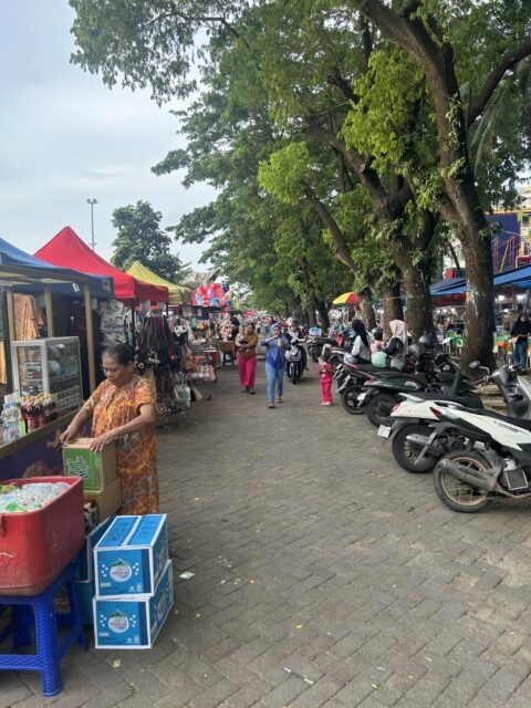 モスク見学後はLosariビーチに戻ってきました。このビーチは夕方頃から露天商が立ち並びます。